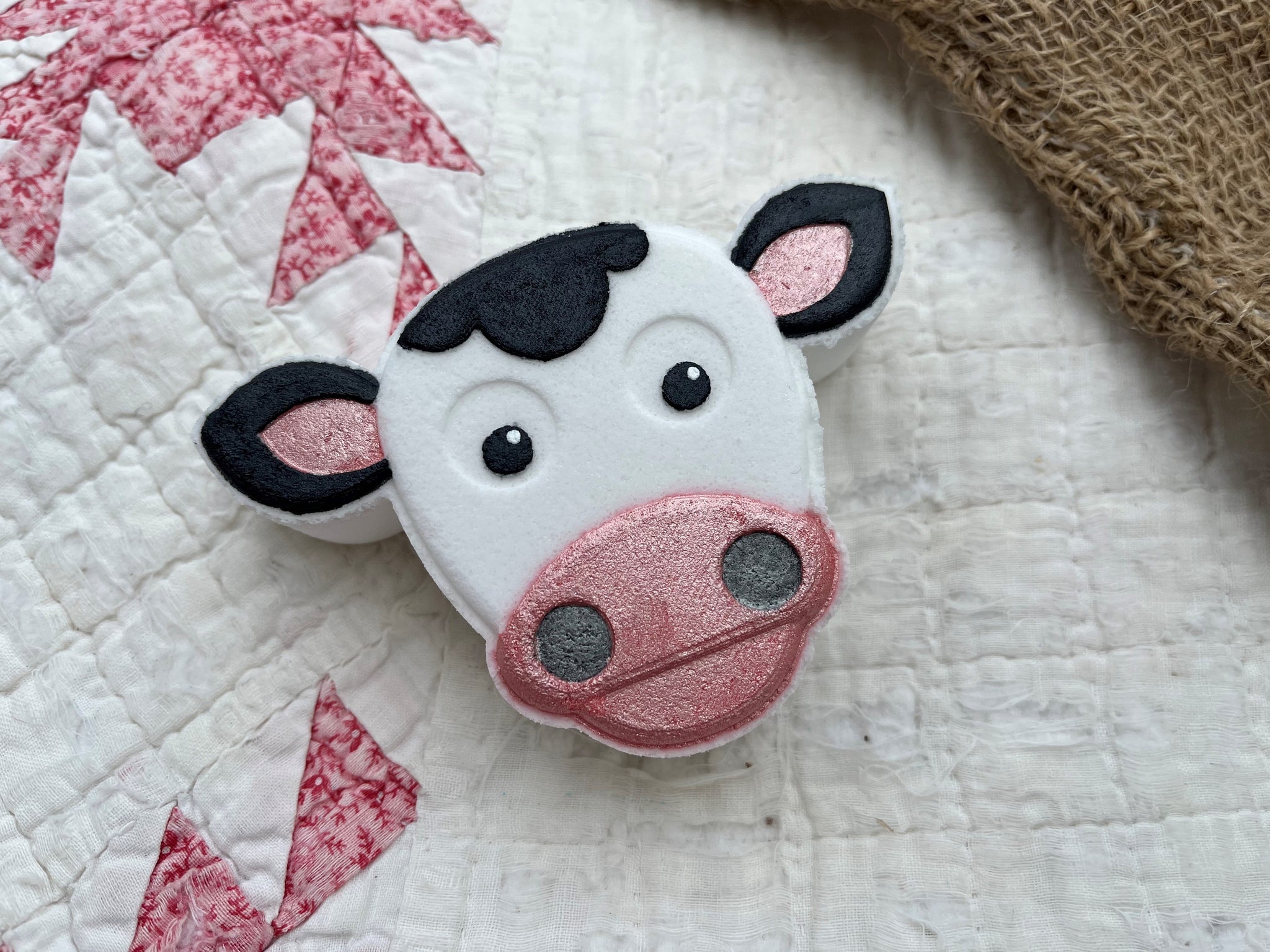 This little cow bath bomb fizzes and foams making your bath a spa-like experience. Smelling of sweet freshly cut grass, you will love this adorable hand-painted little cow face.